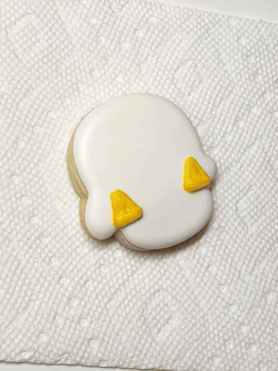 Click here for a post on how to figure out how much royal icing you need. To achieve a more harmonious set of colors: after mixing all of the colors, make sure you add a small amount (start with a pea-sized or smaller) amount of each color to each color (except for the white). This will create a unified color harmony and will take away a tiny bit of the starkness/brightness as you’ll be adding colors from the opposite side of the color wheel to each other. Just make sure not to add too much! Start with a small amount and go from there. For this set, we are using a one-consistency outline and flood. Meaning, we are outlining and flooding with the same consistency (except for the Jack o’Lantern, where we use two consistencies). The set calls for a thick flood, but since these are minis, err on the THICKER side if unsure. In fact, if you were to make more like an extra-thick flood, that works quite well! Check out this post for tips & tricks on how to achieve the best black icing.- White – just white