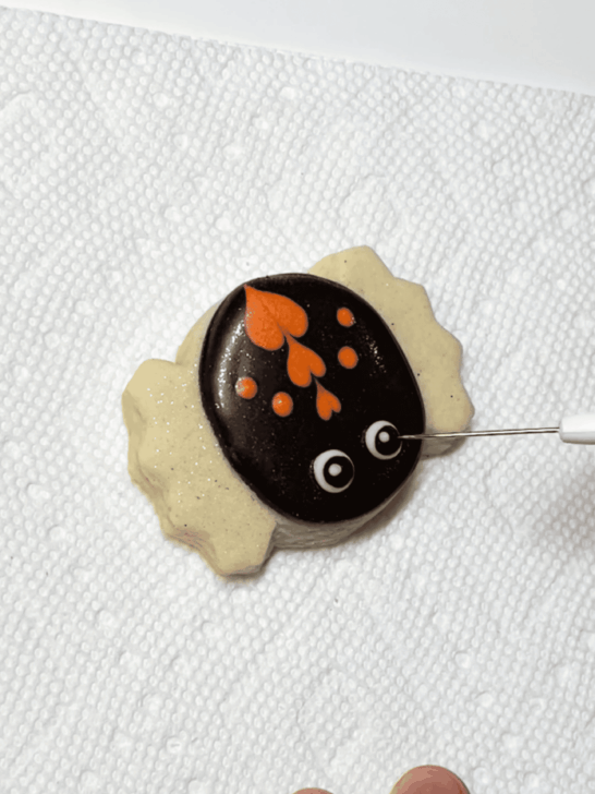 Decorating these Mini Halloween Cookies: