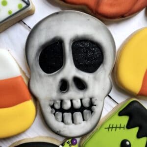 These skull sugar cookies come from this Halloween Royal Icing Cookies set. Check out this post to learn more about creating the full set!