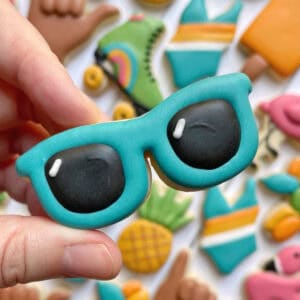 These Sunglasses Cookies come from this Mini Summer Cookies set. Check out this post to learn more about creating the full set!